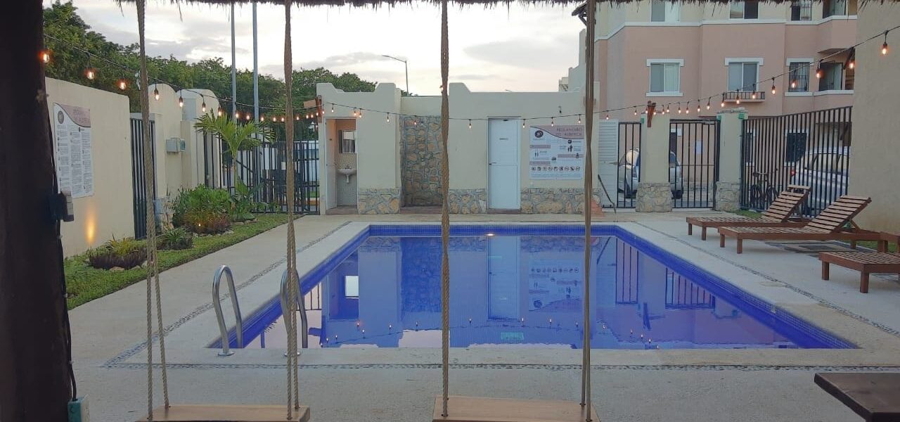 El departamento se encuentra dentro de la privada llamada Belania 2 y cuenta con jardines / palapa / alberca y seguridad vía cámaras.
